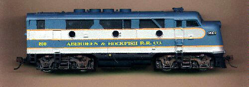 ROAD A&R Aberdeen & Rockfish all Frame Engine black #414110 Trucks Engine black #414110 Body main color faded Blue-B&M blue #414245 add 1/4 capful SF silver #414143 Body main color new Badger #16-169 Body second color SF Silver #414143 Body separator stripe red Handrails, grabs Engine black #414110 Stanchions blue Walkway black Edge Walkway blue Lettering white Number boards black/white numbers Decals none © S.A. McCall 1996