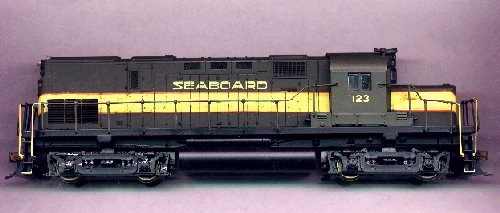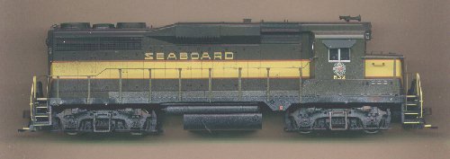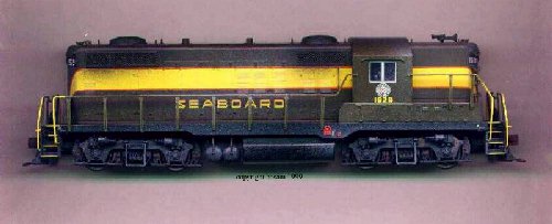 SEABOARD AIR LINE Red & Black Red-Caboose red #414128 Black-Engine black #414110 Decals-MS #87-152(switchers early) decals-MS#87-565 (switchers late)SEABOARD AIR LINE Citrus colors Green-Pullman Green # 414284 Yellow-Reefer yellow #414122 add 1/4 cap reefer white #414113 Orange-GN orange #414224 Silver-Bright Silver #501998 Black-engine black #414110 decals-MS #87-439(E units) SEABOARD AIR LINE/SEABOARD COAST LINE Light green & red Green-Aged White #414131 add 1/8 cap SF blue #414150 Red-Caboose red #414128 decals-MS #87-439(E units) SEABOARD AIR LINE Green & Yellow(Pullman green) Green-Pullman green #414284 Yellow-use Microscale decals or Reefer yellow #414125 add 1/4 cap reefer white #414113 Orange-Reefer orange #414119 decals-MS #87-565(Road switchers and freight units), #87-566(stripes) SEABOARD AIR LINE/SEABOARD COAST LINE Light Green & Yellow (Jolly Green or Lime green) Green-Mix 2 ounces reefer yellow #414125 with 1/2 ounce of SF blue #414150. Yellow-use Microscale decals or Reefer yellow #414125 add 1/4 cap reefer white #414113 decals-MS #87-565(Road switchers and freight units), #87-566(stripes) All color mixes are based on PollyScale Acrylics paint numbers.